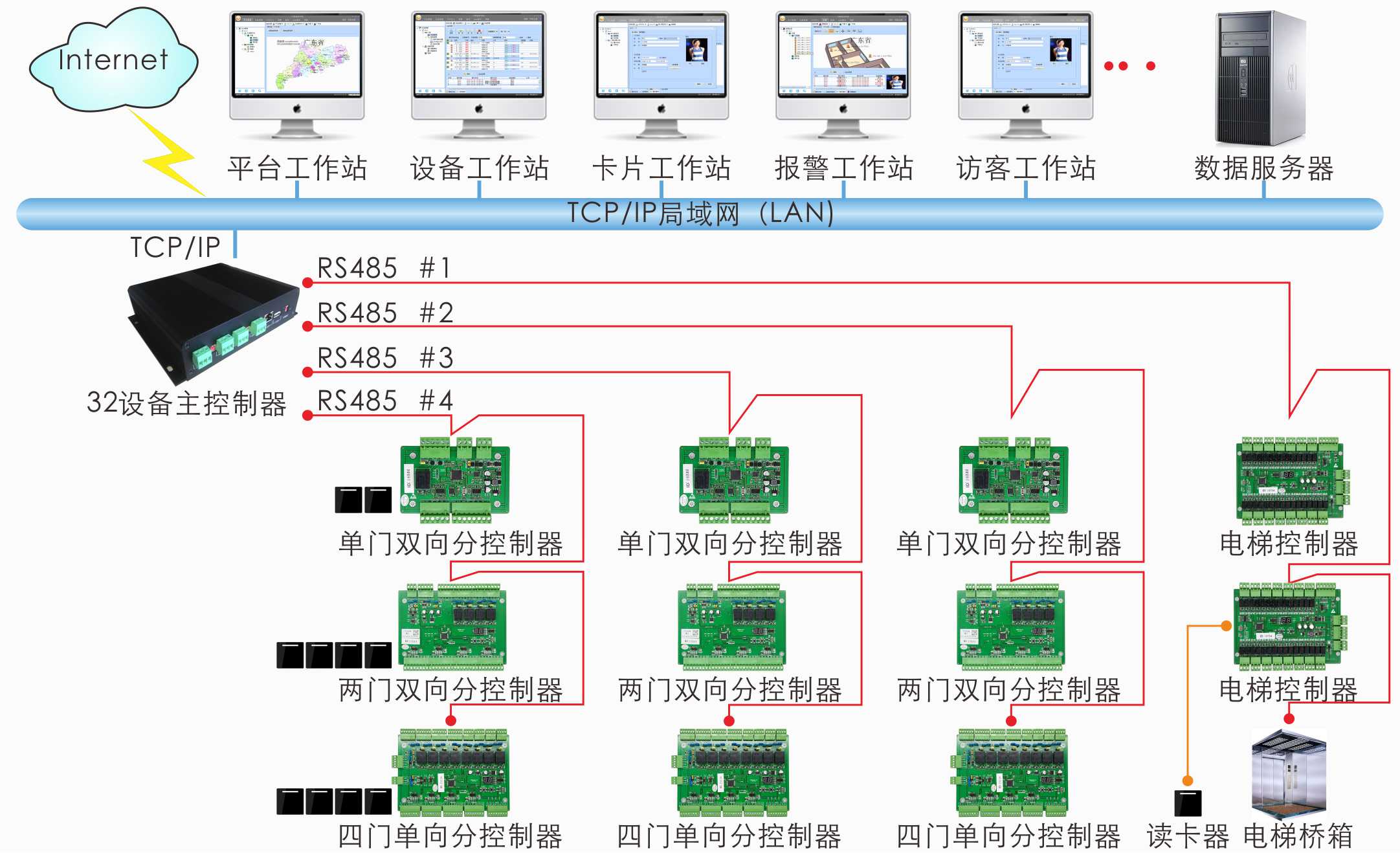 6、24和32台分控(单门双向、两门双向和四门单向)设备;