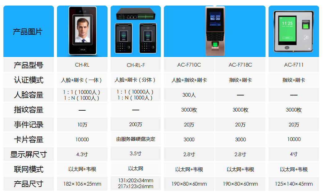 支持指纹、人脸、刷卡等