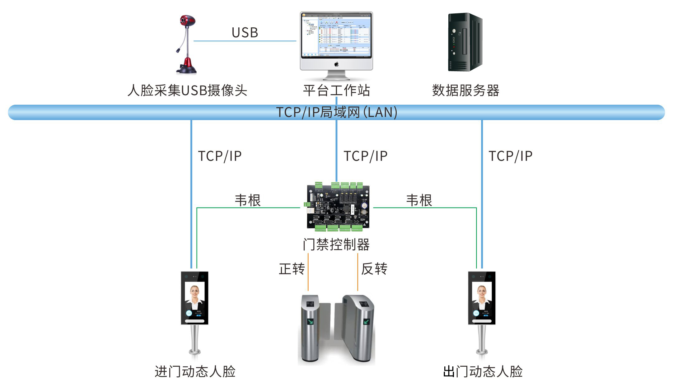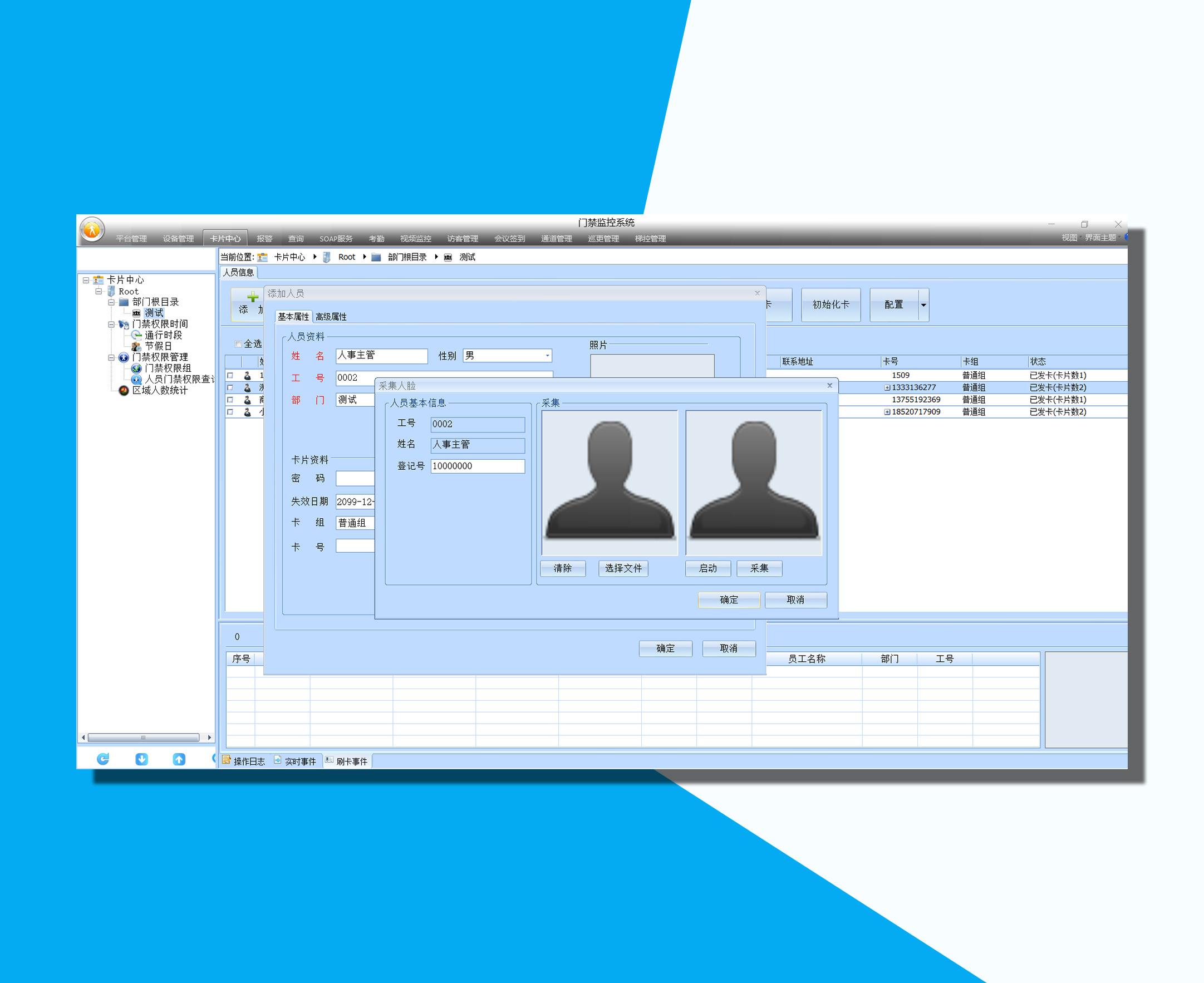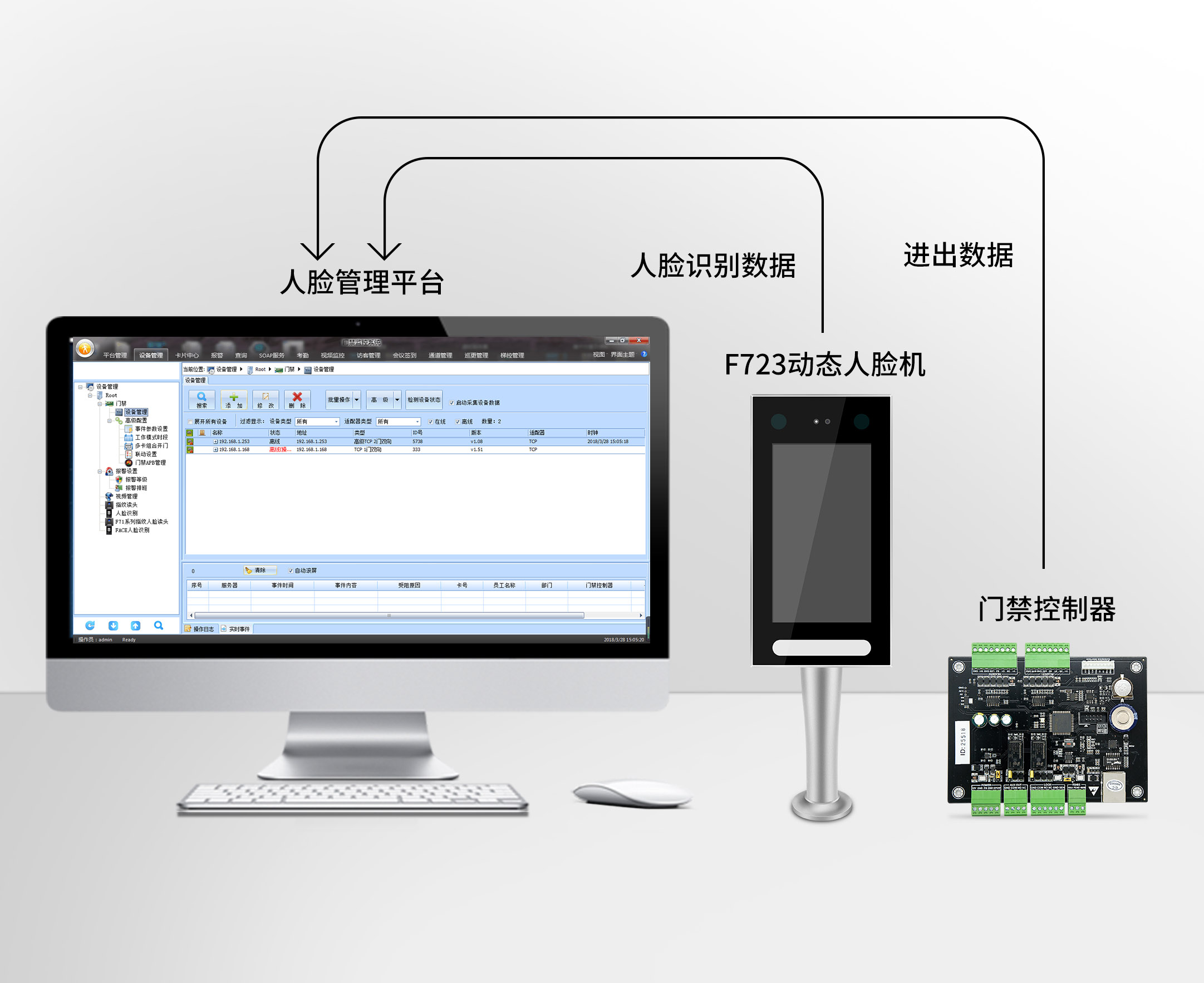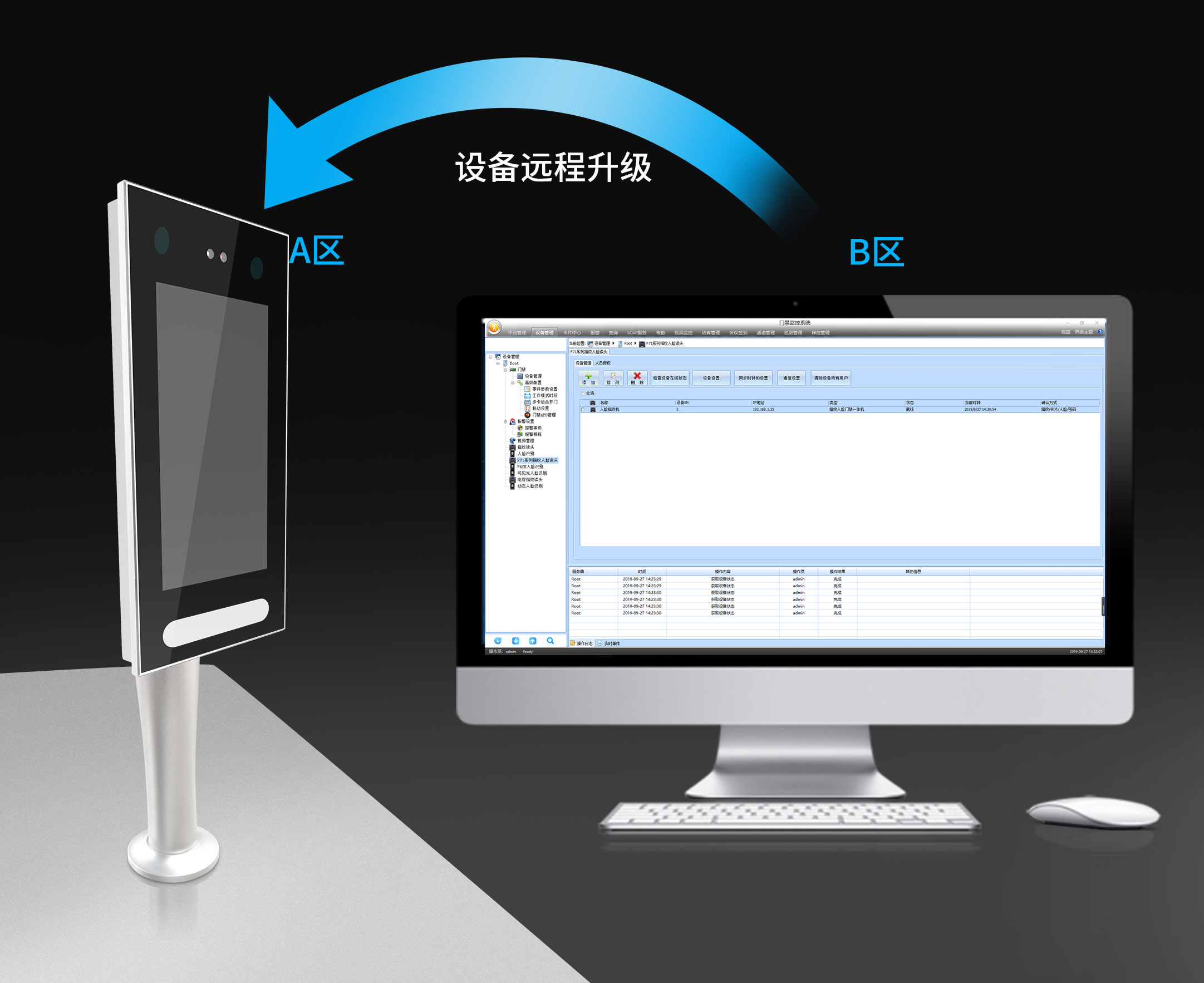采用统一门禁管理软件进行动态人脸设备管理,统一进行人脸采集和授权