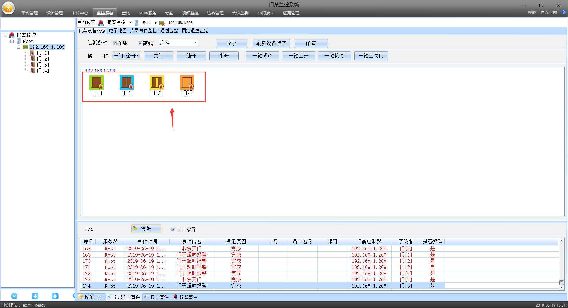 全屏电子地图实时监控,批量门点操作和门状态显示