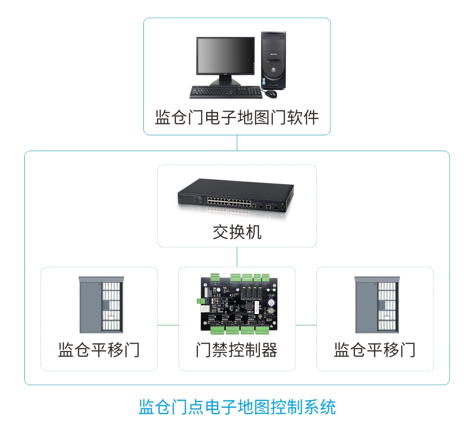 针对监狱(看守所)重点安全防范单位场合,本方案可实现对监仓门点的电子地图统一远程监控管理,实现对指定区域监仓门点的“一键全开、一键全关、一键戒严、半开、缝开“等多种开门方式的批量门点管理。支持对监仓门点的状态实时监控,自定义规定时间内禁止指定人员的开关门操作等专业化监仓管理功能。