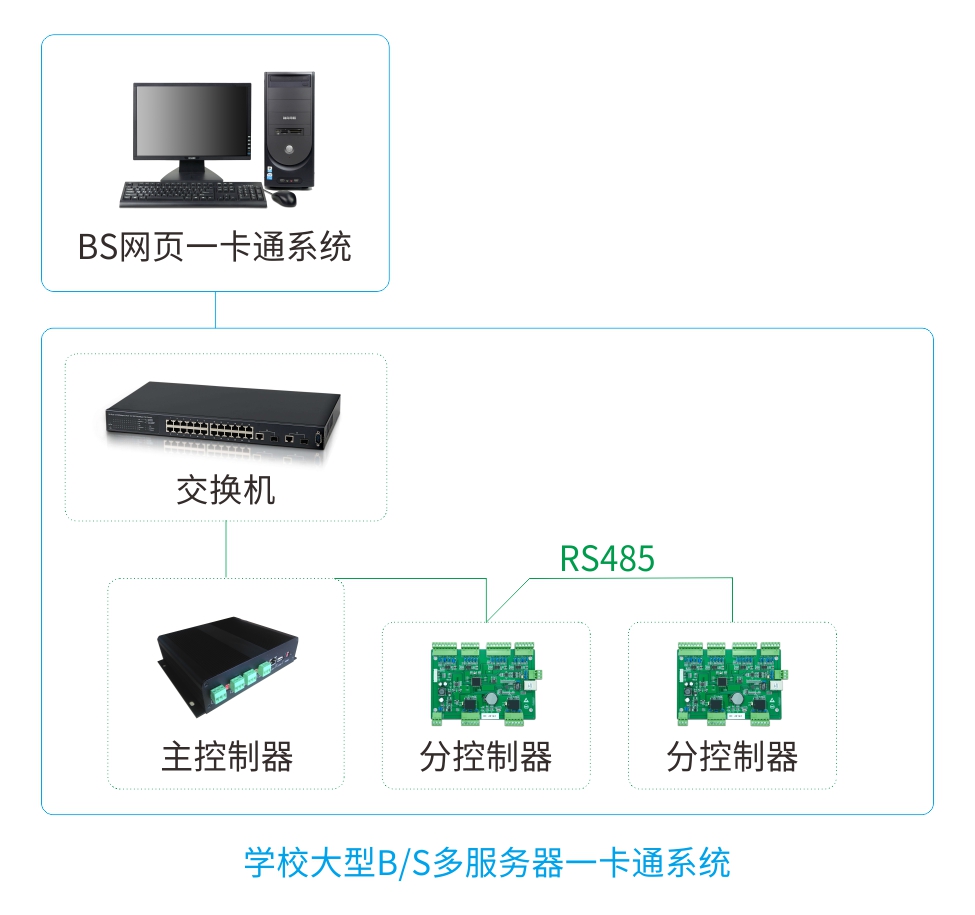 针对一些门点数量较多、门点授权复杂的大型高校场合。本解决方案采用国外大型项目普遍采用的“以太网+RS485“混合式联网门系统产品,软件系统采用B/S网页技术,仅需打开网页即可实现整个系统的管控。服务器采用多服务器管理方式,每台服务器分管不同门点数量,可轻松实现几千个门点的统一管理。人员授权提供”人选门“、”人选权限“、”多权限“等多种授权方式,适用于任何复杂授权的场合。
