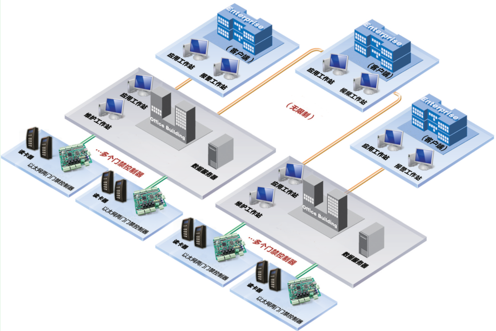门禁控制器采用以太网+RS485混合联网产品,专用大型系统