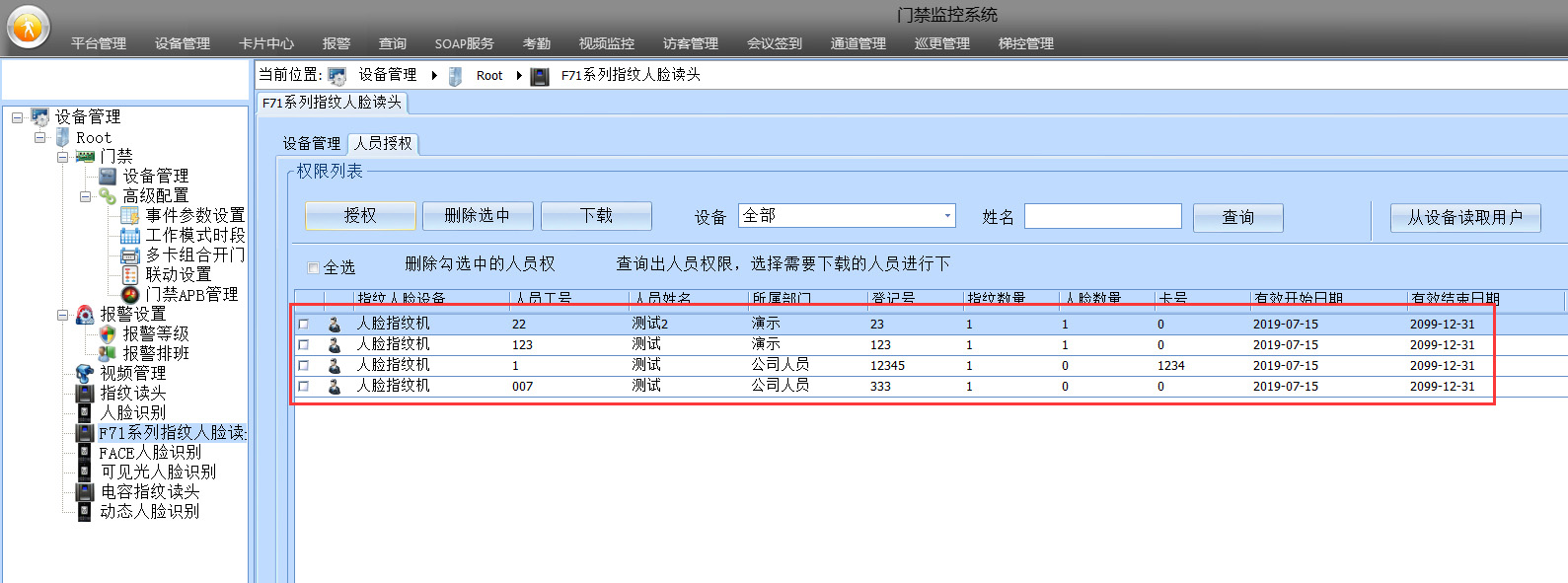 支持一卡通系统人脸采集下载,同一软件完成人脸授权管理