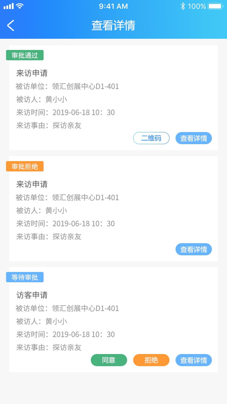 被访人可通过小程序查询近期访问人员的相关信息及进行访客统计分析。